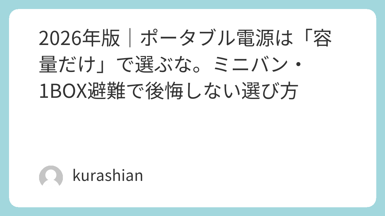 結論からいうと、ミニバン・1BOXでの防災用ポータブル電源は、容量だけで選ばないほうが失敗しにくいです。