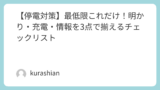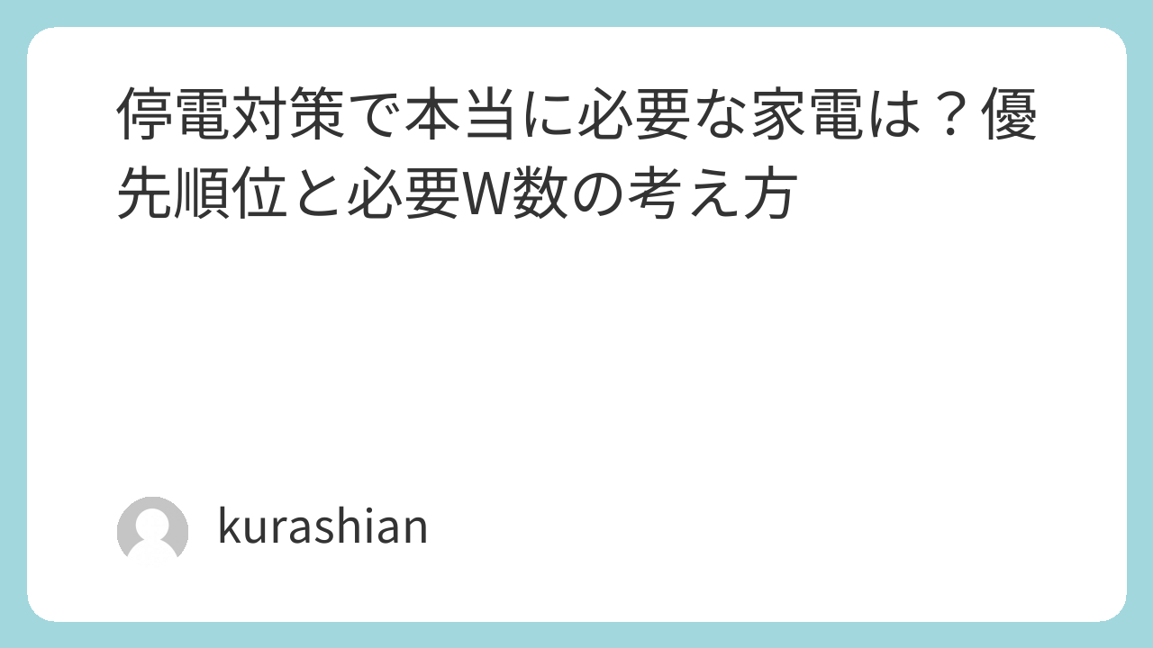 - 停電対策は、まず「命・情報・快適さ」の順で考えると失敗しにくい